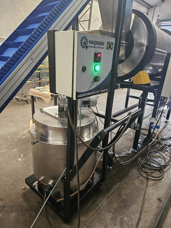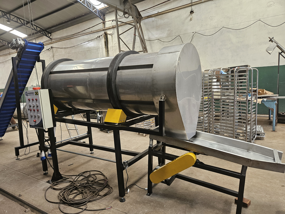Em um processo de uma indústria de produção de alimentos, o momento de temperar os alimentos de maneira uniforme após serem assados ou fritos é essencial. É nesse momento que entra o temperador rotativo, que em geral, é composto por um tambor com degraus com a função de misturar os alimentos.